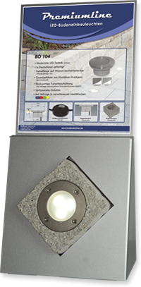 Die jeweilige Leuchte ist in Ihrer Ausführung frei wählbar (Oberfläche des Abdeckrings sowie Leuchtfarbe).